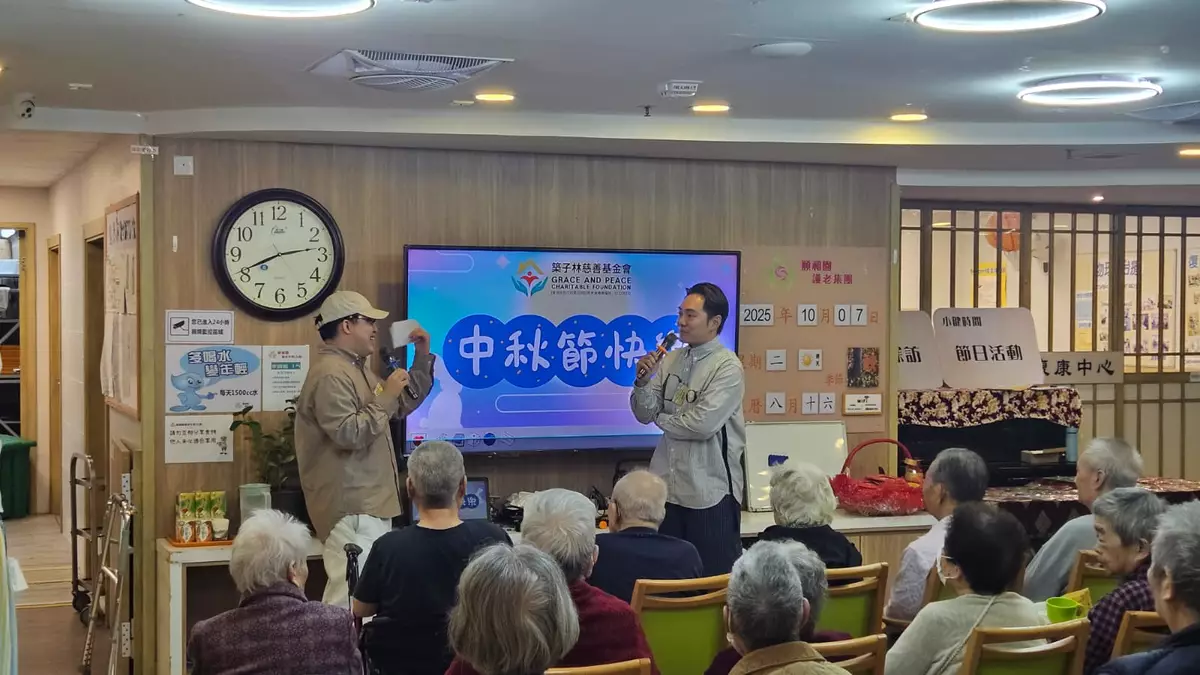 在活動尾聲,大會準備了中秋猜燈謎環節,並向所有長者派發活動紀念品。而活動最動人的一刻,是總幹事張睿真女士與一位婆婆即興合唱經典金曲《相思風雨中》,真摯的歌聲與互動,贏得全場最熱烈的掌聲,場面溫馨感人。