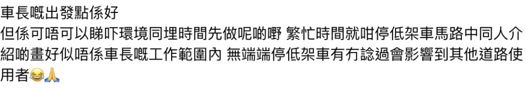 涉事車長在帖文留言區「現身」,感謝乘客配合,並以「只有真誠最動人」回應「博出位」批評。