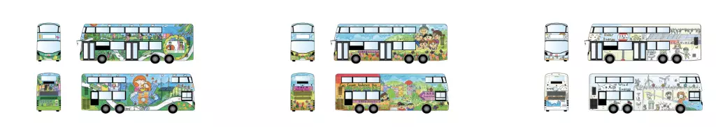 九巴巴士車身設計比賽以「Go Green, Anderson」為主題,鼓勵學生發揮創意,以繪畫表達對安達臣道新發展區的綠化建設期盼。九巴圖片