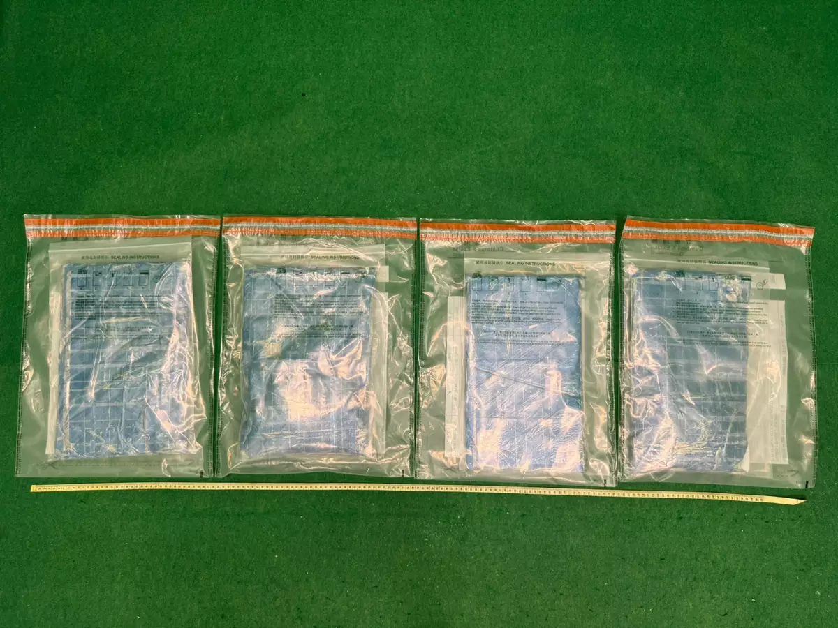 香港海關星期四(十月九日)在香港國際機場偵破一宗行李藏毒的販毒案件,檢獲約四公斤懷疑海洛英,估計市值約二百萬元。