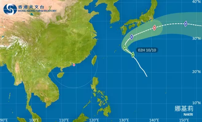 在上午8時,熱帶風暴「娜基莉」集結在沖繩島以東約520公里,預料向西北移動,時速約15公里,移向琉球群島一帶。