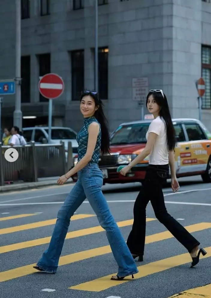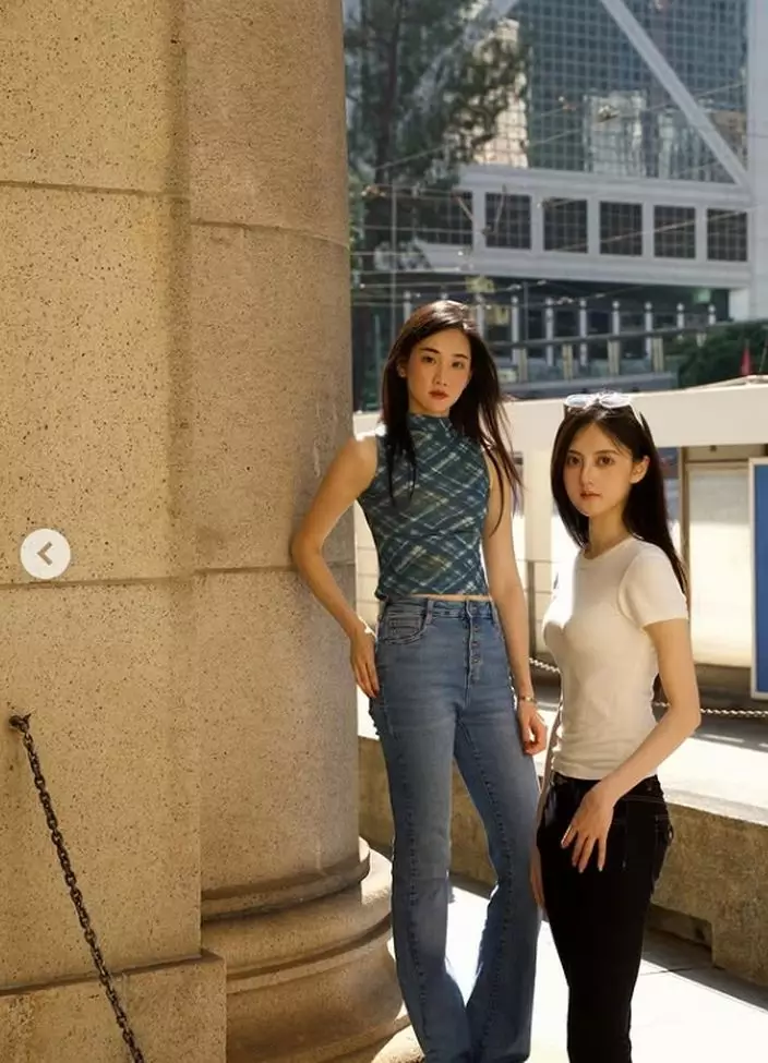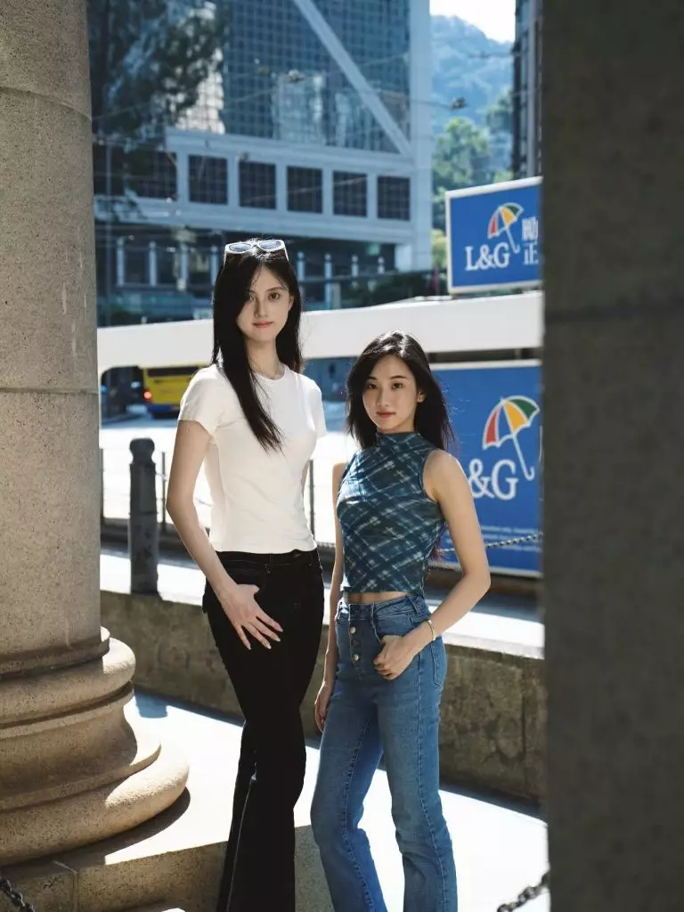應屆港姐季軍袁文靜(Jane)憑藉174cm的高挑身形及出眾氣質,一直備受關注。近日她在社交平台分享與表妹於香港街頭拍攝的合照,再度引發網民熱議。相中可見,Jane的表妹同樣擁有標致樣貌,身高更達176cm,比Jane還要高出兩厘米。兩人均擁有修長美腿及接近「上身三、下身七」的完美身材比例,非常吸睛。
