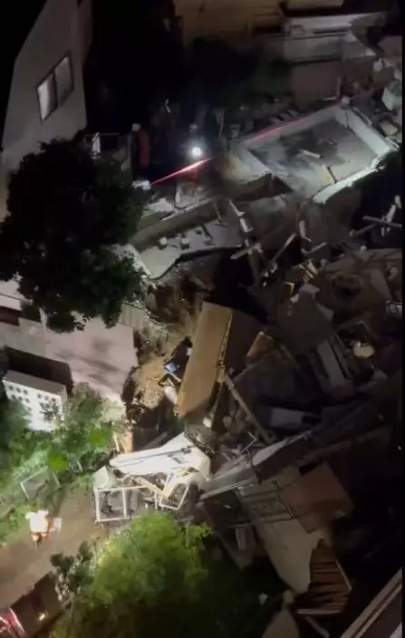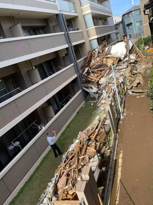 綜合日媒報導,日本東京都杉並區於9月30日晚間發生一起住宅倒塌事故,一名居民於當晚7時15分左右通報稱,「有獨棟住宅正在崩塌。」警方到場後發現,高約4至5米的圍牆突然崩塌,壓垮上方一幢建於1967年的兩層木造老宅,瓦礫甚至波及對面新建公寓陽台及步道,所幸無人受傷。