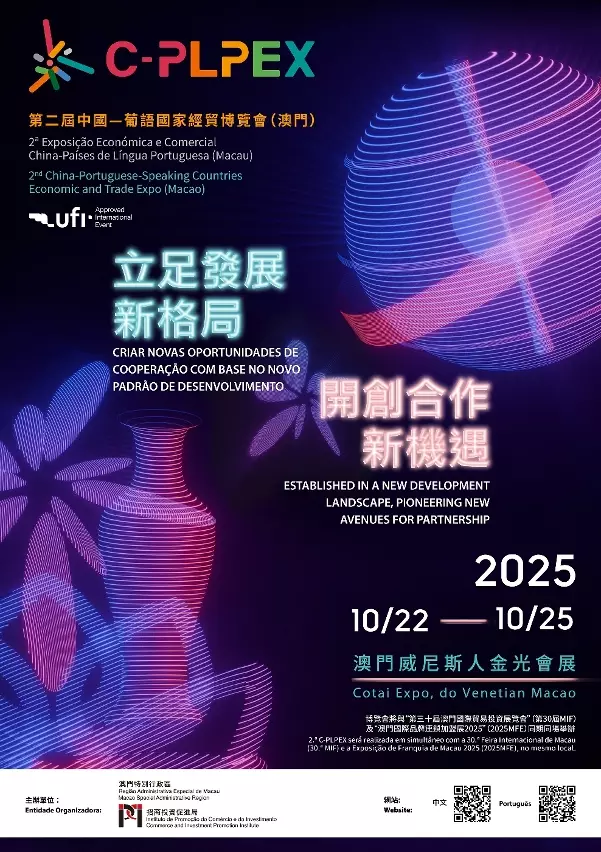 第二屆中葡博覽會將與「第三十屆澳門國際貿易投資展覽會」及「澳門國際品牌連鎖加盟展2025」同期同場舉行,三展聯動實現資源疊加與效益最大化。如欲了解第二屆中葡博覽會最新資訊,可瀏覽大會網站:www.cplpex.mo,或致電(853)2822 8289,亦歡迎關注微信號:MICE_IPIM。