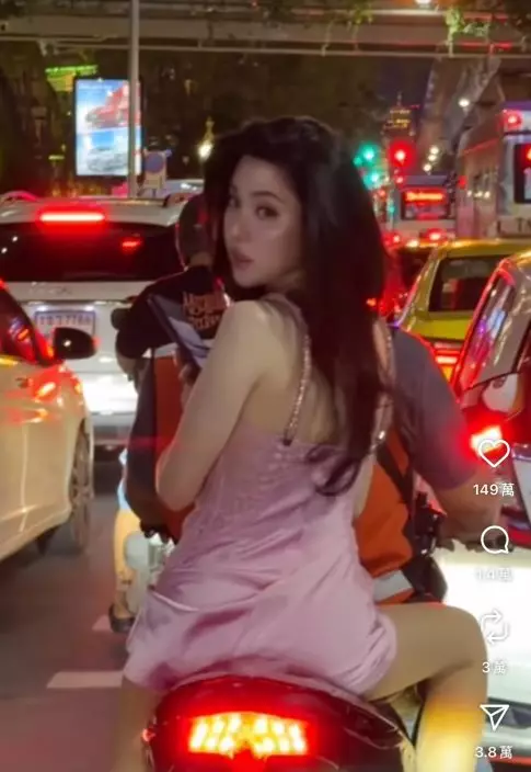 泰國一名女星著粉紅色睡衣坐電單車穿梭市區展露性感身材,因自信模樣掀起「睡衣模仿潮」。