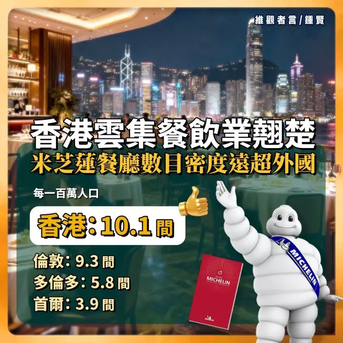 香港米芝蓮餐廳密度遠超倫敦、多倫多及首爾。