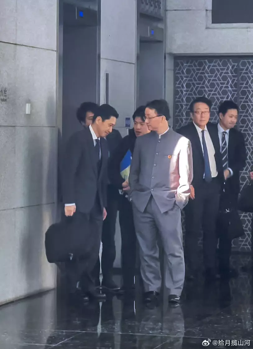 外交部亞洲司司長劉勁松(右)與日本外務省亞洲大洋洲局局長金井正彰(左)會談後,雙方神色凝重。微博圖片