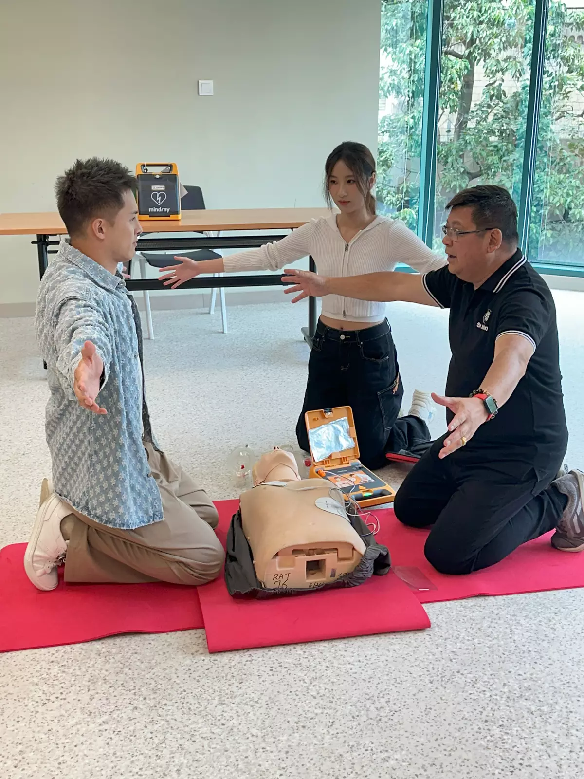 他續指:「非常感謝聖約翰救傷機構的悉心安排,讓我和Windy能夠一同參與課堂,學習CPR及使用AED。雖然我早年在美國求學時曾經修讀過相關急救知識,但畢竟已有一段時間沒有重新學習。今次課堂內容大部分理論與以往相似,但經歷疫情後,部分程序已作出改良。例如以往CPR通常會配合人工呼吸進行,但現時已不再主張這個做法,而是以膠囊面罩復甦器(BVM)取代,既更合乎衞生原則,也能減低傳染病的風險。」