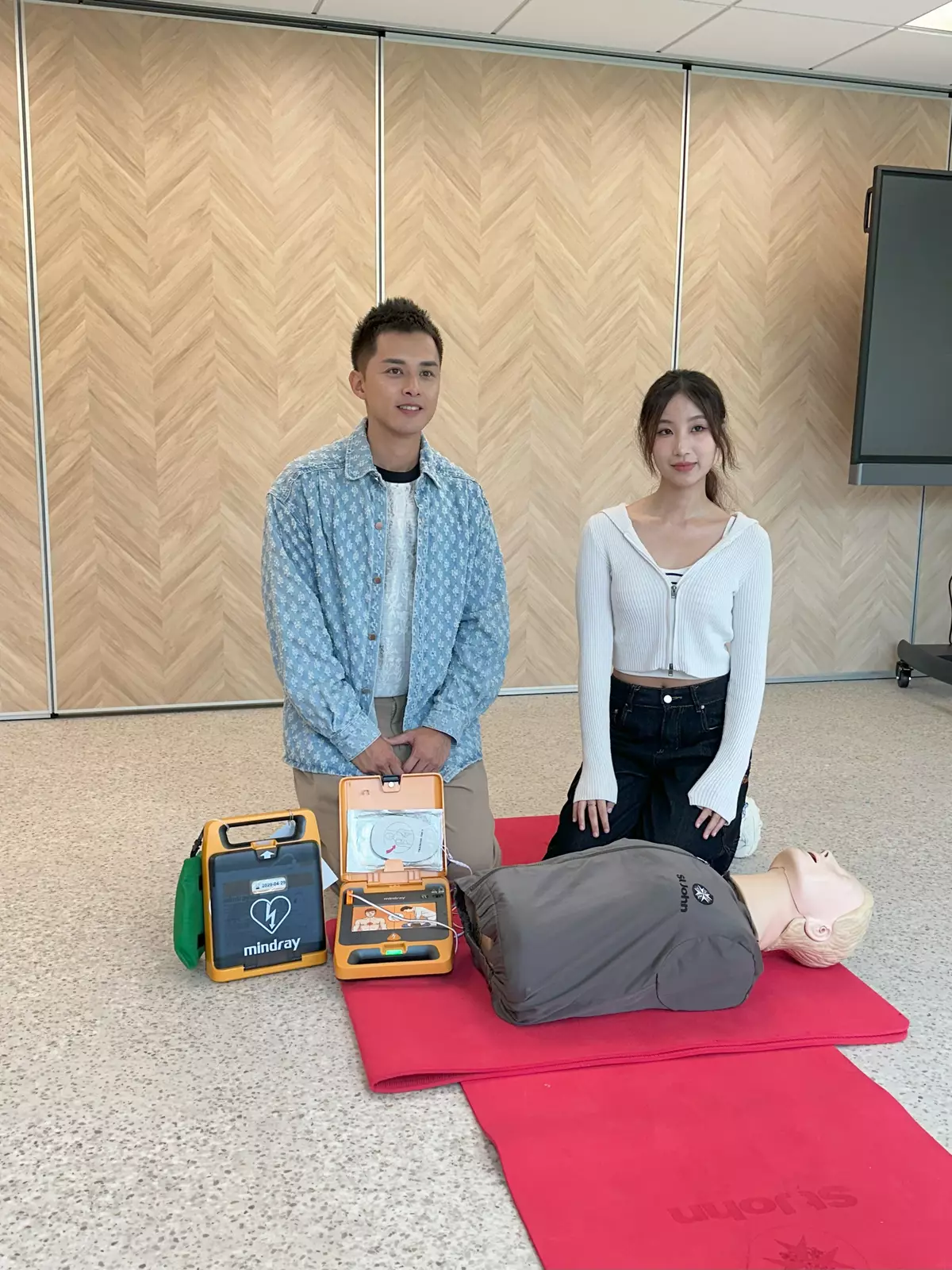 11月22日出席,由國際扶輪3450地區、香港東北扶輪社及香港聖約翰救護機構合辦的「心肺復甦法及去顫法教育計劃2025-2026啟動典禮」在香港聖約翰救護機構總部舉行,宣傳大使何廣沛(Matthew)及詹天文(Windy)出席,二人早前抽空完成6小時「心肺復甦法及去顫法證書課程」,並成功通過考核獲頒急救證書。