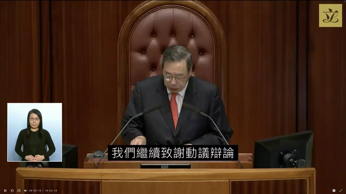 立法會通過《施政報告》致謝議案。立法會直播截圖