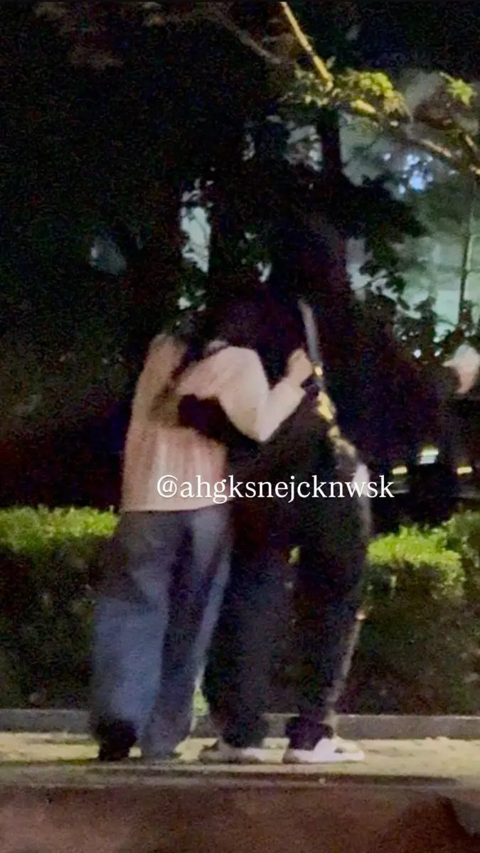 男團TXT成員休寧凱被拍到與一女子在街頭相擁。 網上圖片