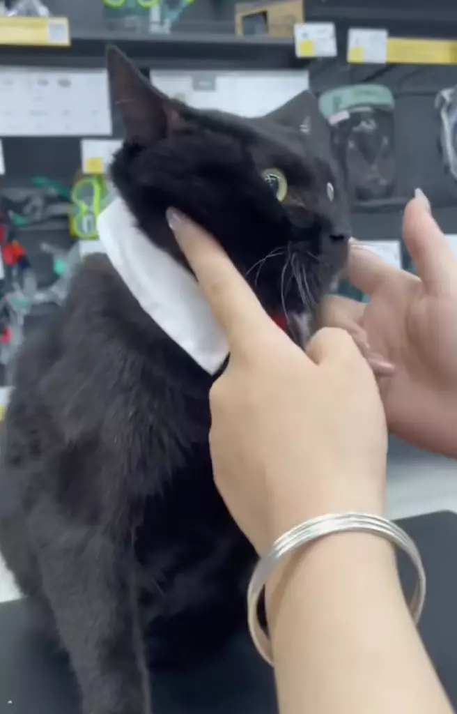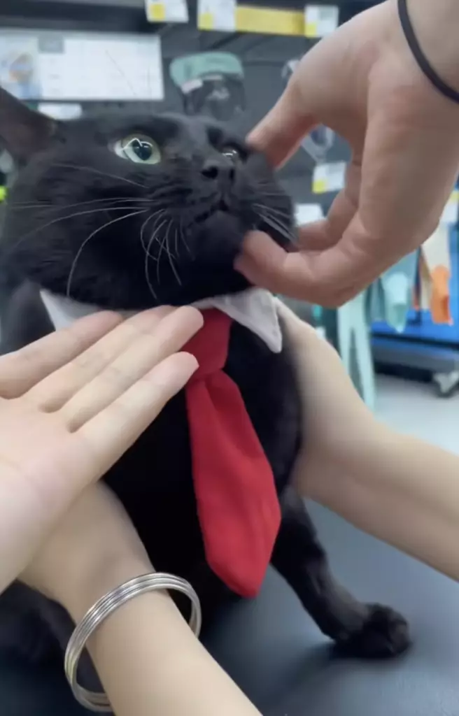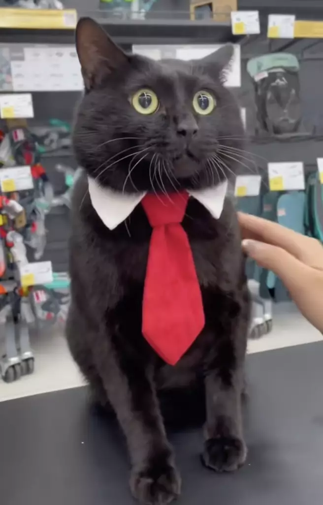 最近有網民在社交平台曬出一隻黑貓,牠疑似體驗了他的第一次「社畜人生」。影片中主人帶牠一起去上班,還幫牠穿西裝打領帶,還安排了櫃枱的位置給牠,畫面雖然帥氣卻又有點好笑。