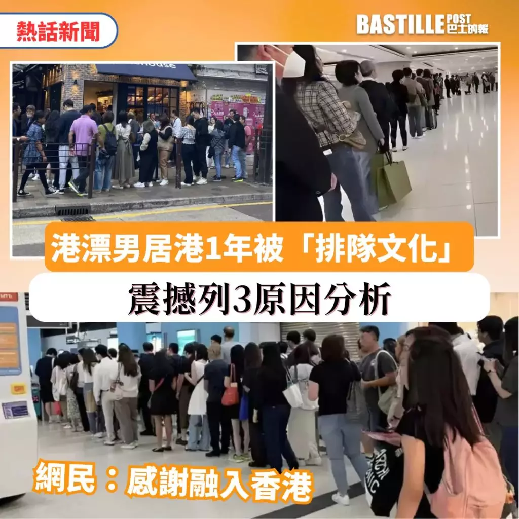 一名港漂男於網上發文大讚香港的排隊文化,無論茶餐廳外等位、港鐵扶手電梯前、買奶茶,香港人都會自覺地排隊,他更初列出3點原因分析。