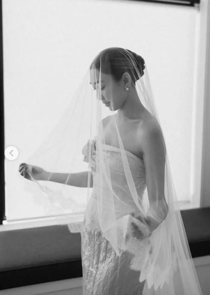 胡定欣昨日在IG連環發帖,先上載一襲婚紗獨照,型格姿勢配簡約頭紗。其後她再分享婚前準備花絮,相中酒店房中梳妝枱擺滿用品,身穿家居服的胡定欣已化好精緻妝容,未換婚紗仍難掩幸福光彩。她以英文感慨寫道:「上周五,真是完美美好的一天,我們選擇的吉日,希望一切順利。如願以償,尤其感謝紐西蘭的藍天白雲,時間、人物、地點都安排好了,但天氣卻無法提前預約。」