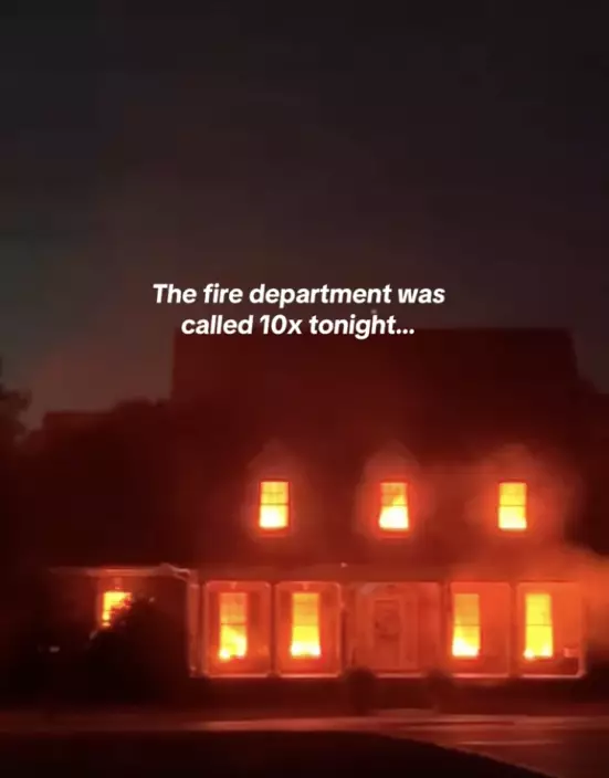 @themillerstok This house looked like it was on fire and the owners have asked that people stop calling the fire department 🔥 because it’s just a Halloween decoration in Fountain Inn, SC