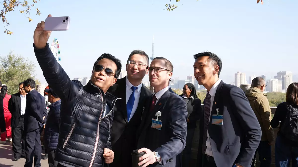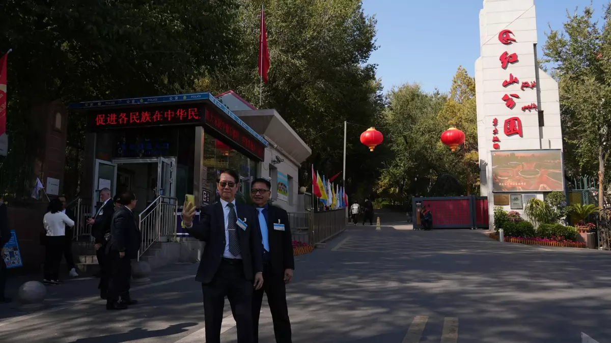 下午,代表團來到新疆紅山公園,體驗城市地標的自然之美與文化底蘊。紅山公園位於烏魯木齊市天山區,佔地約40公頃,因紅色砂岩山體而得名,被譽為「烏魯木齊的綠色心臟」。