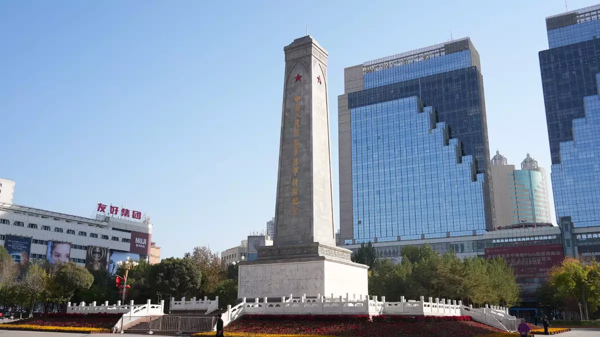 紀念碑高約30米,碑身採用花崗岩建造,氣勢莊嚴,碑文記載了進軍新疆的歷史背景與意義,周圍環繞綠地與雕塑,寓意和平與團結。