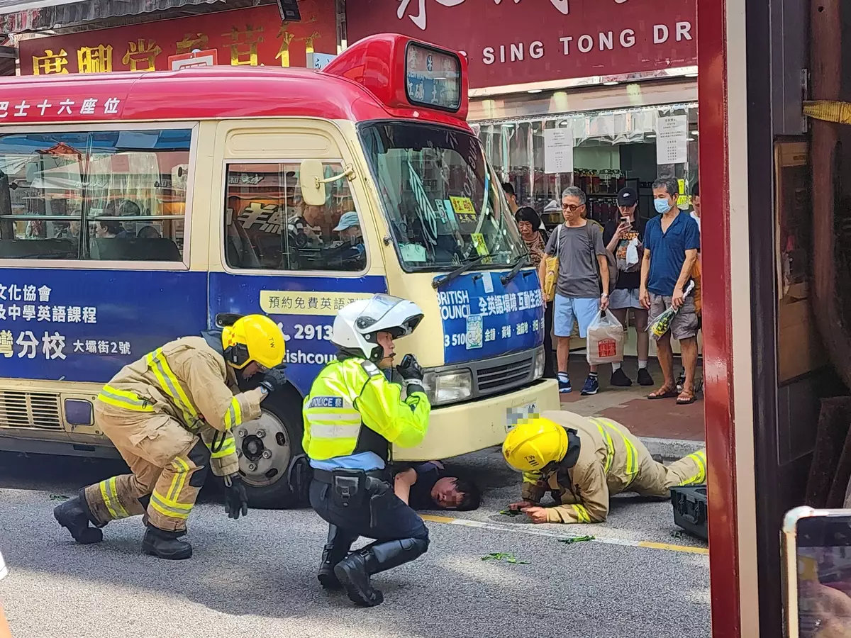 荃灣川龍街有小巴懷疑撞倒一名過馬路女子,女子被困車底由消防員救出清醒送院,63歲小巴司機涉嫌危險駕駛引致他人身體受嚴重傷害被捕。