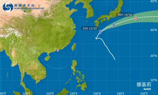 天文台指出,與廣闊低壓槽相關的驟雨及雷暴正影響南海北部及廣東沿岸,星期日早本港多處地區錄得約5毫米雨量。在上午8時,強烈熱帶風暴「娜基莉」集結在東京之西南約860公里,預料向東北偏東移動,時速約26公里,橫過日本以南海域。