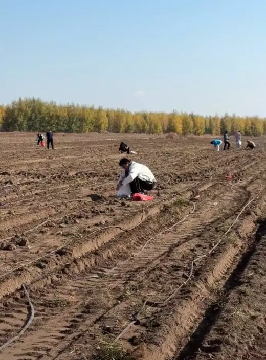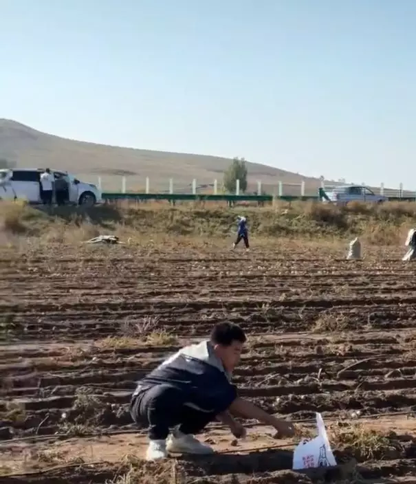 內蒙古一條公路旁現執薯仔奇景,數十遊客在路邊停車湧入田間彎腰撿拾,官方回應指已獲農民同意。