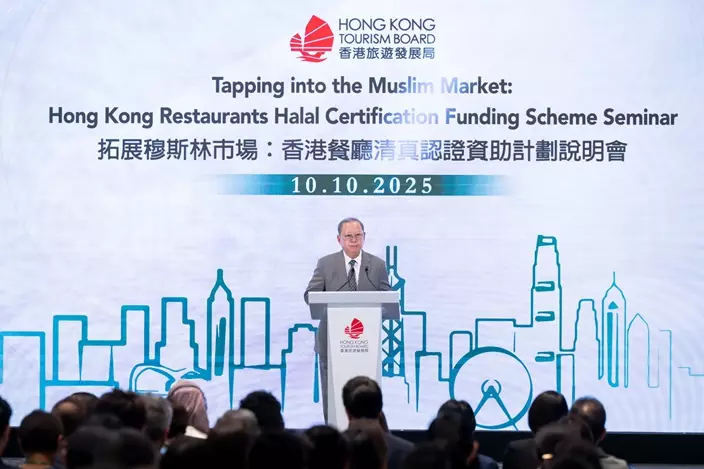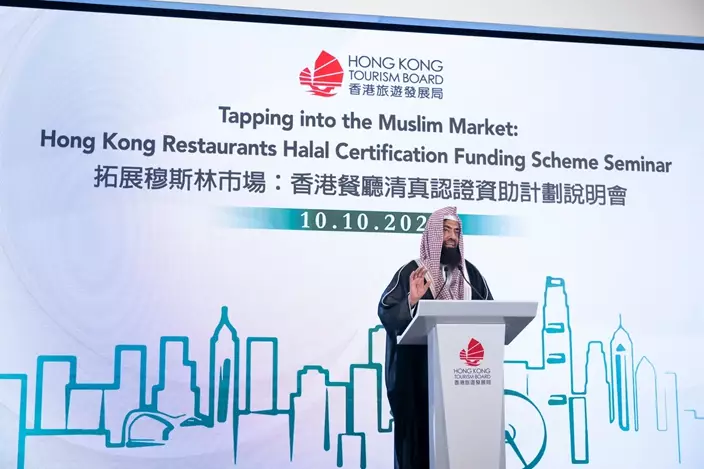特首在新一份《施政報告》提出,鼓勵業界推出更多穆斯林旅客友善設施及餐飲,旅發局上周五(10月10日)舉辦香港餐廳清真認證資助計劃說明會,文化體育及旅遊局局長羅淑佩、旅發局主席林建岳、文化體育及旅遊局常任秘書長沈鳳君及旅遊事務專員張馮泳萍出席活動。