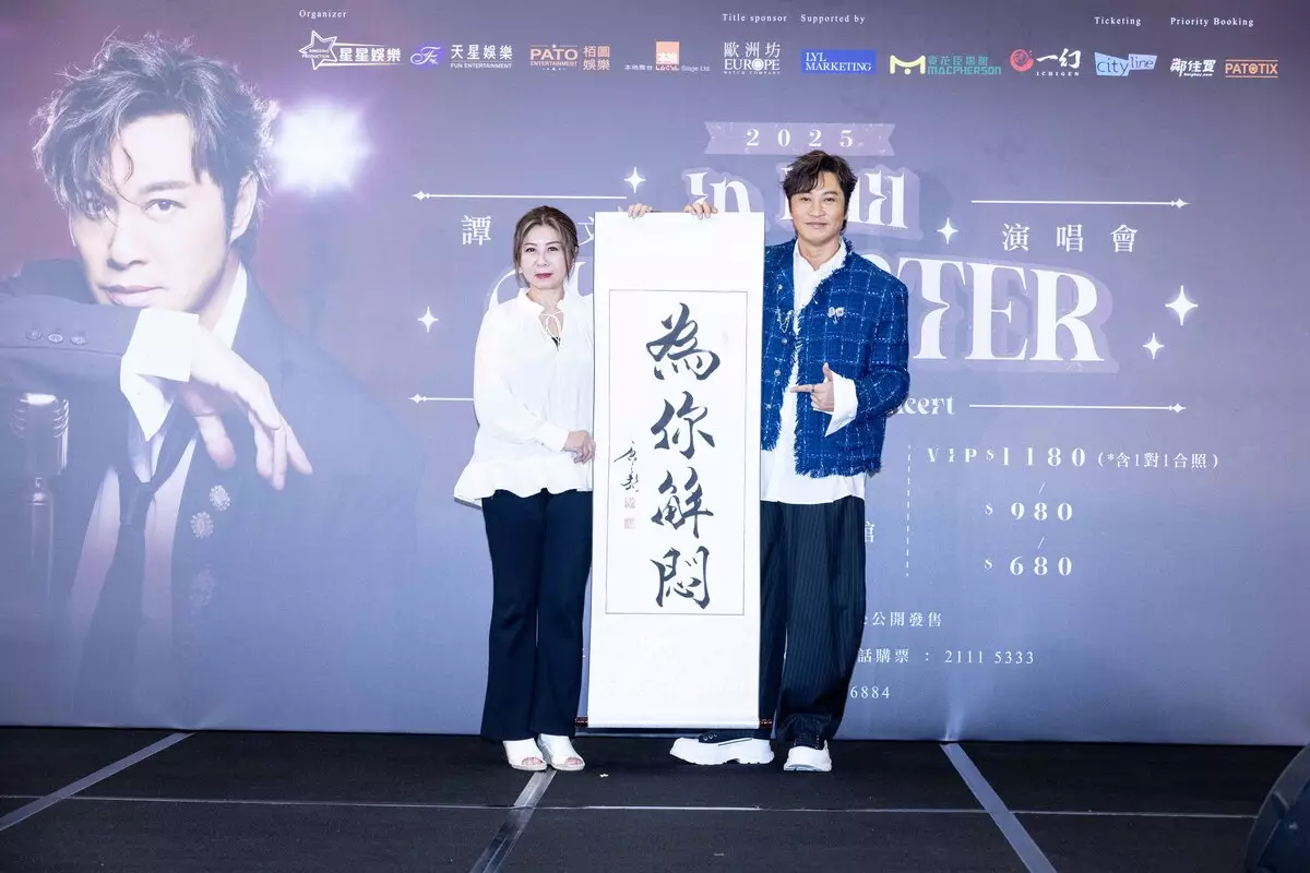 主辦單位「星星娛樂」送上以譚耀文首張專輯名稱「為你解悶」這四字寫成書法字畫。
