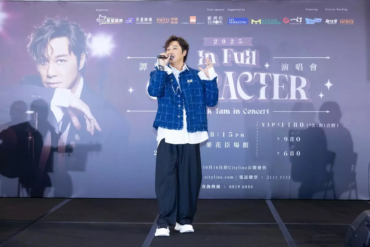 「歐洲坊呈獻:《譚耀文 In Full CHARACTER》演唱會」日前舉行記者會公布詳情,除主角譚耀文外,主辦單位和贊助商,還有阿譚在「聲秀」的學員胡港豐、布子殷與蕭凱恩,以及他的數十位歌迷也有親臨現場支持。演唱會門票於10月13號(星期一)中午12時正在輪住買及Pato Tix進行優先訂票,10月16號(星期四)中午12時於Cityline公開發售。