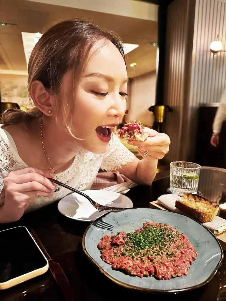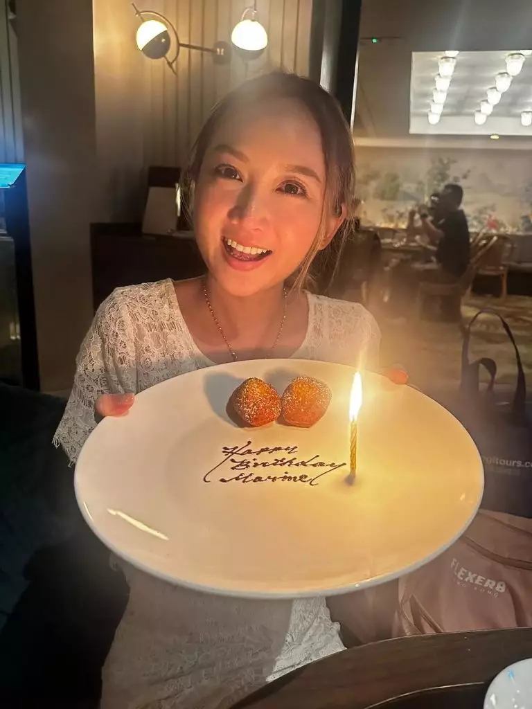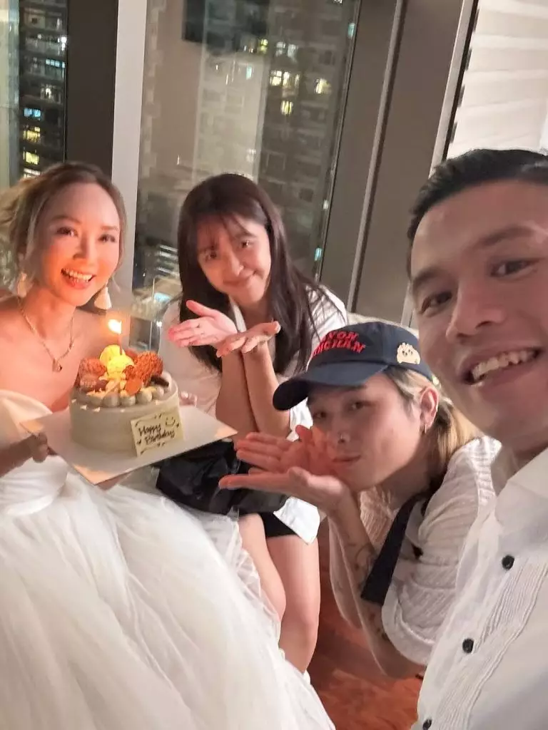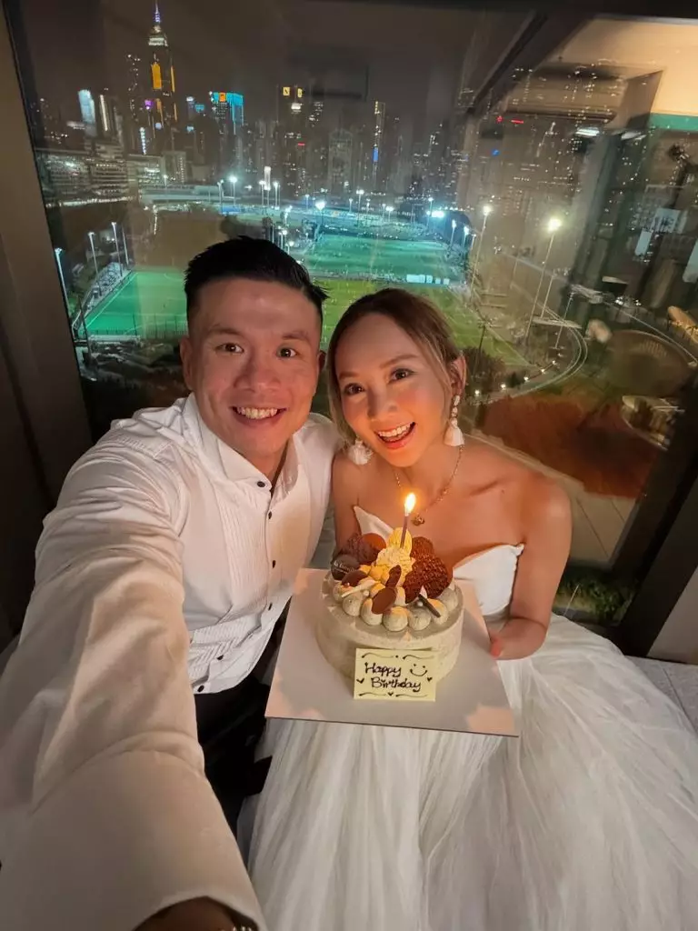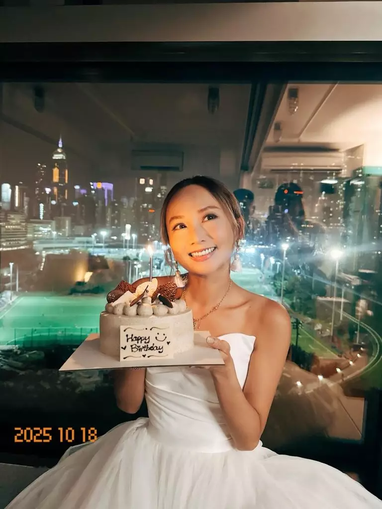 𡃁妹於IG貼出慶生照片,寫道:「謝謝大家生日祝福,今個生日就是不停吃、不停拍。 希望新一年一齊順利 謝謝 @lafamillecake @redburnmedia 的蛋糕 @anoviabride 的婚紗 @modetuxedo 的禮服 終於食到米芝蓮牛肉他他 @louise.hkg 謝謝 @loves.on.wedding.hk @egl_tours 邀請的海外婚禮活動,食到由日本大廚專程來香港做的菜。 還有終於吃到雞胸雞蛋仔、手工漢堡…… 謝謝 @chester.album @filmedby.lisa 為我們拍照 最重要謝謝老公的安排 @oceankit #40+」