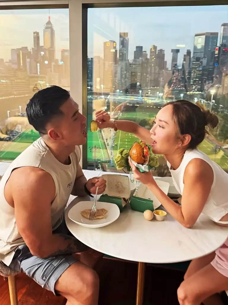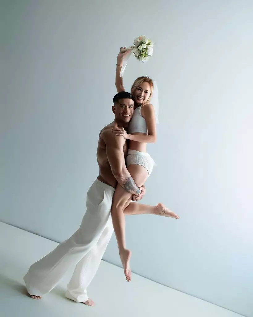 熱愛健身的李綺雯和梁愷傑操得一身健碩身型,二人不時於IG分享靚相大晒靚肌,就連二人的婚照亦沒有錯過晒肌的好機會,拍了一輯別具特色的晒肌婚照。