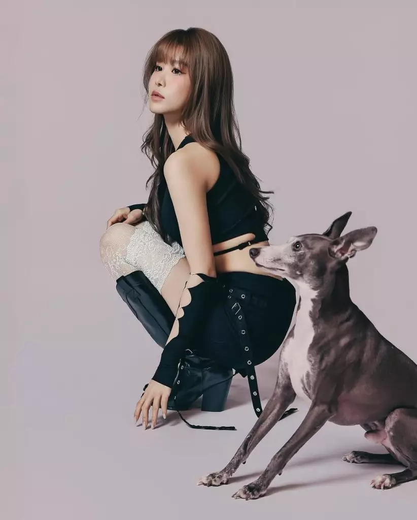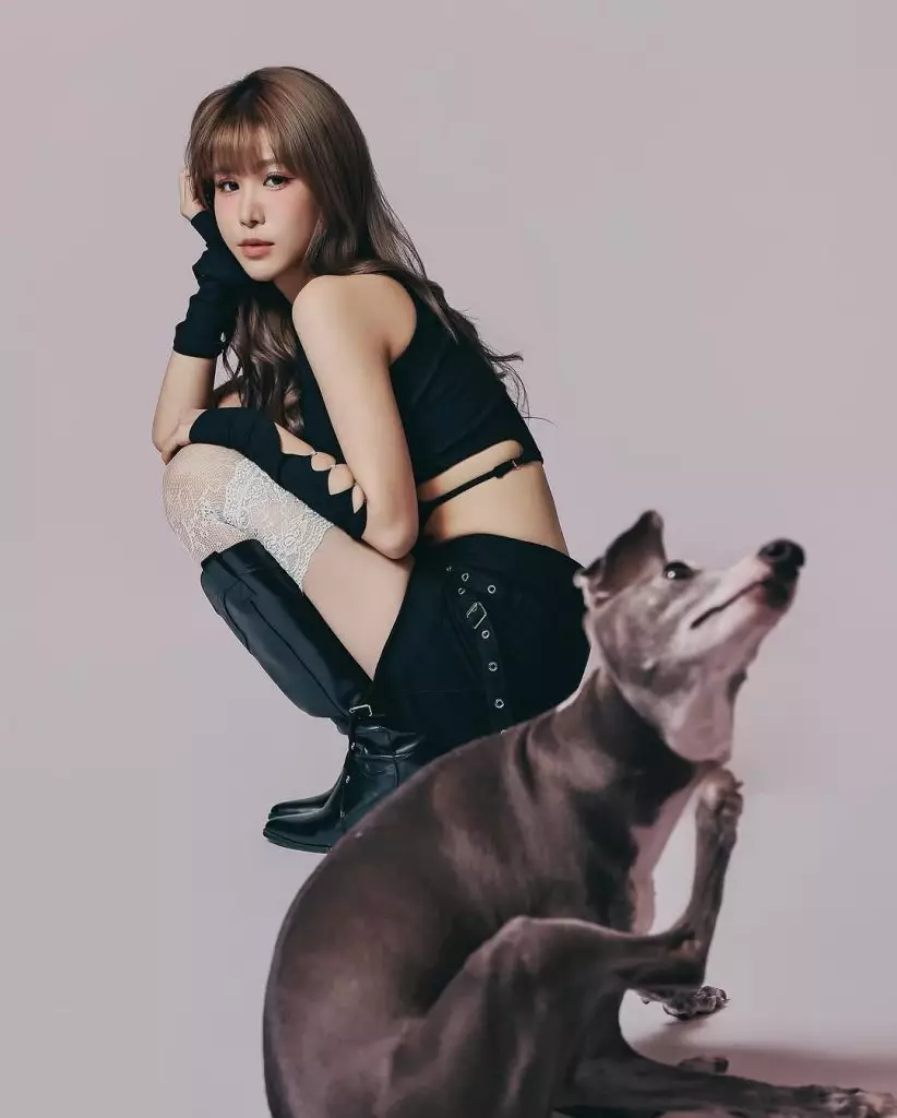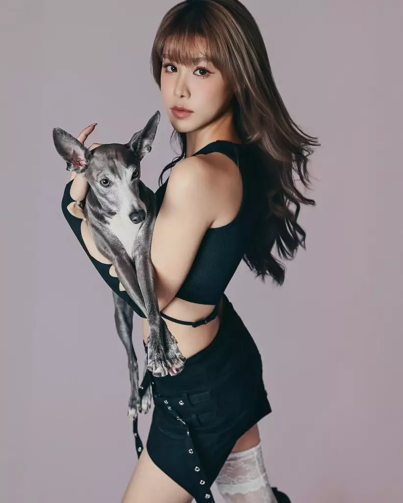 2019年港姐季軍古佩玲(Kelly)近日與愛犬Louie拍攝寫真,換上黑色性感造型的Kelly型格十足,與Louie Sweet爆互動。