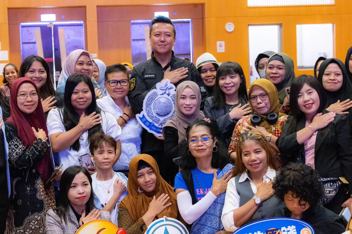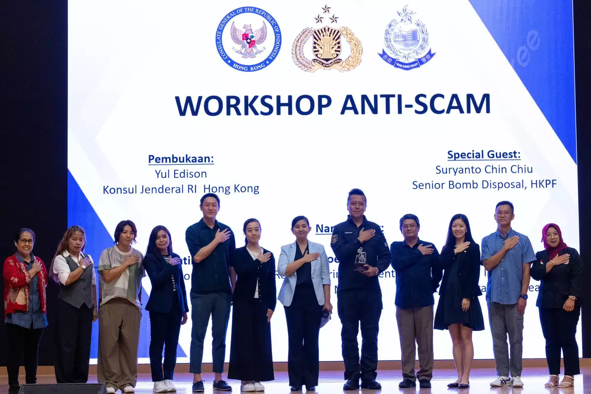 講座到尾聲時,印尼駐港總領事館特別邀請人氣印尼華僑「展超Sir」(警方爆炸品處理課高級炸彈處理主任高級警司李展超)驚喜現身,「展超Sir」身穿工作服到場,由拆彈專家化身為防騙大使,並用印尼語呼籲印尼傭工提防騙子及提醒身邊人。