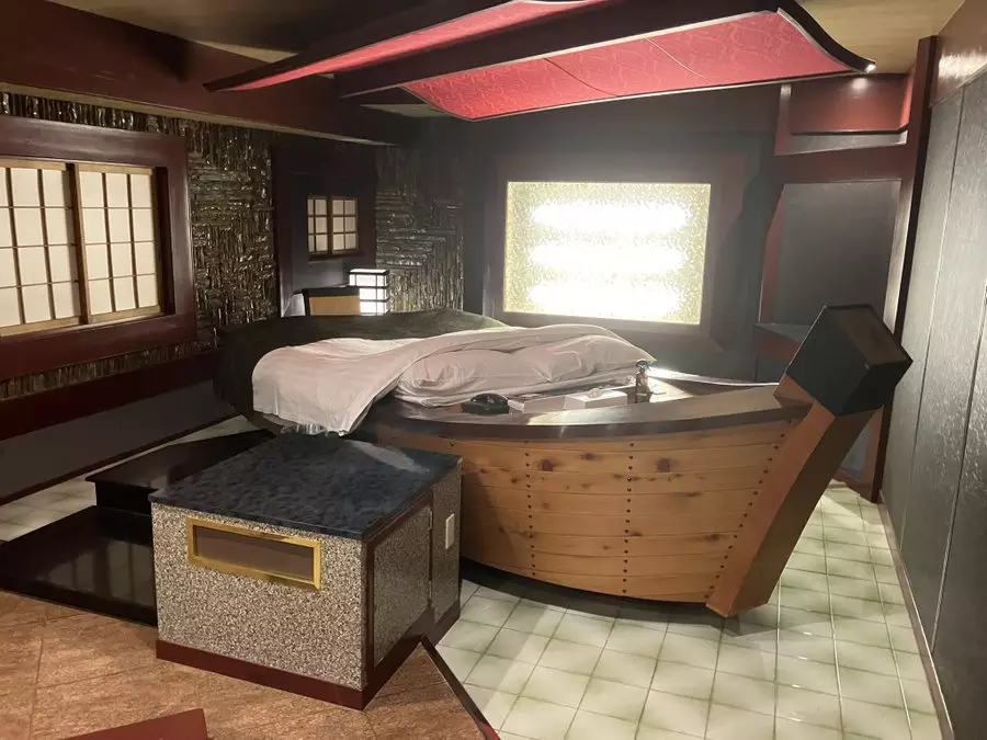 日人為慳旅費入住大阪愛情賓館,開門驚見一艘巨型木船爆笑不已,引來網民打趣︰浪起來!