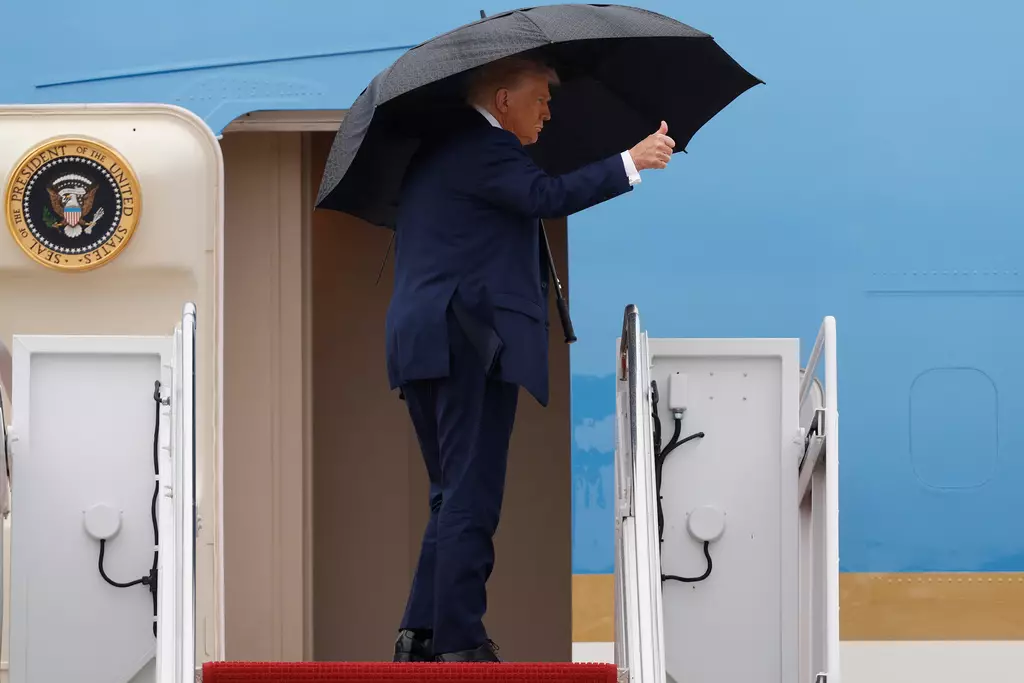美國時間10月12日,總統特朗普啟程前往中東。AP圖片
