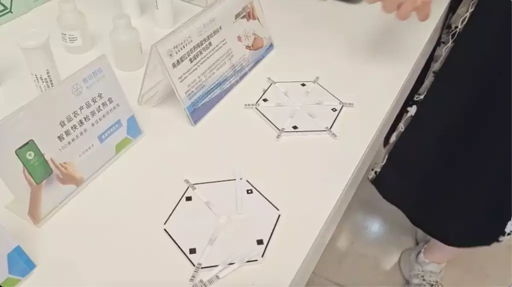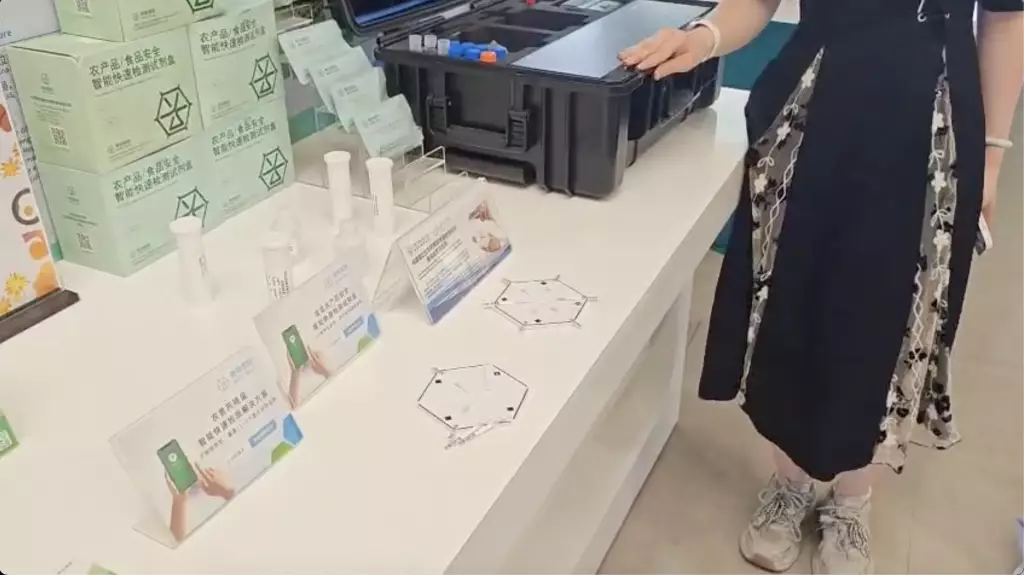王媛表示,以往的檢測比較漫長和繁瑣,如今推出快速檢測試劑盒,只需要直接把試劑條放到上面,就可以顯示你在手機上它是否有農藥或者是其他的重金屬等污染殘留,甚至具體有什麼類型什麼類別的殘留,也可以比較清晰的顯示出來,為食品安全牢牢把關。