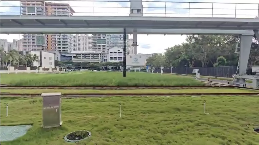 種子實驗室還有先進的設備。在試驗田中,一個高5.7米、寬21米像巨型龍門架的的龐然大物正在緩慢移動,並依據科研人員輸入的指令,有序的掃描龍門架下田間的作物。王媛介紹,這個巨物便是「龍門吊架」,它的學名叫軌道式高通量植物表型採集平台,可以沿著布設的軌道,掃描田間任何一個點位。以往要在育種的田地,用人手肉眼檢查每一棵培植作物的生長情況,但要在就由「龍門吊架」代勞,紀錄植物的生長情況。