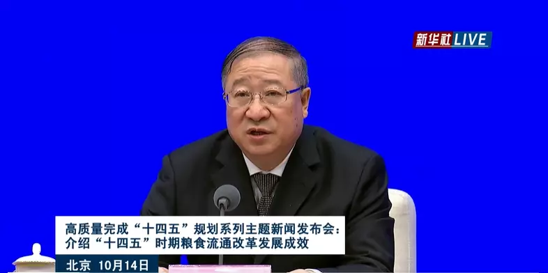 國家發改委黨組成員、國家糧食和儲備局局長劉煥鑫在北京出席國新辦新聞發布會。微博影片截圖