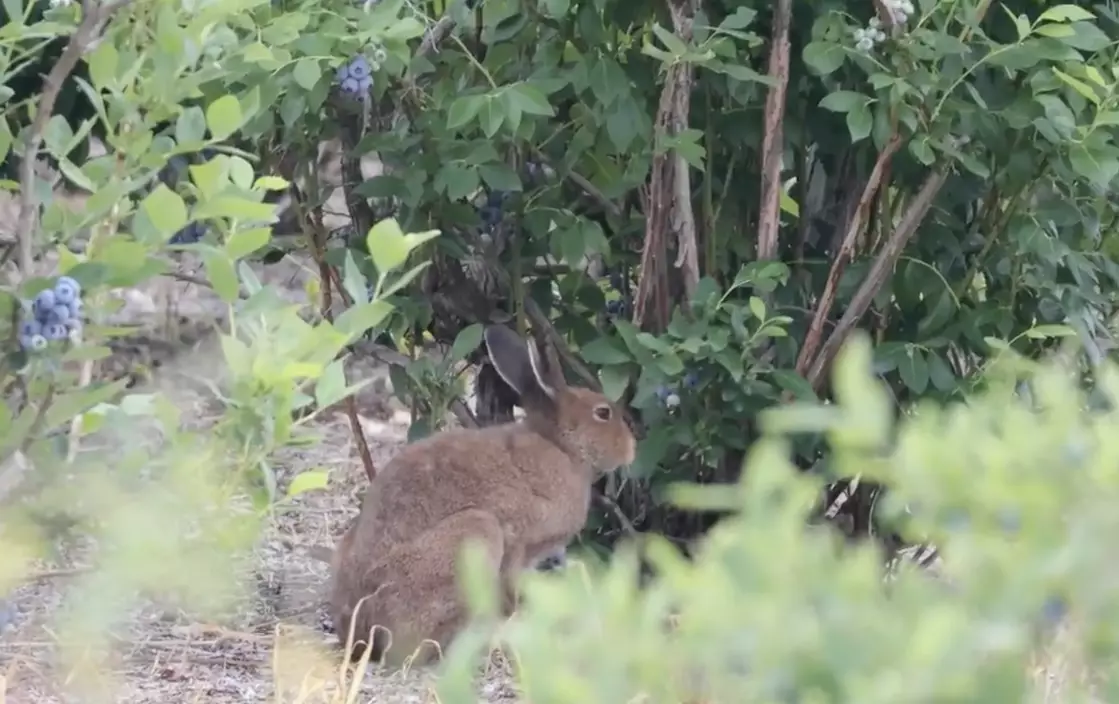 野兔闖入農場啃食藍莓意外成「天然清潔工」。影片截圖