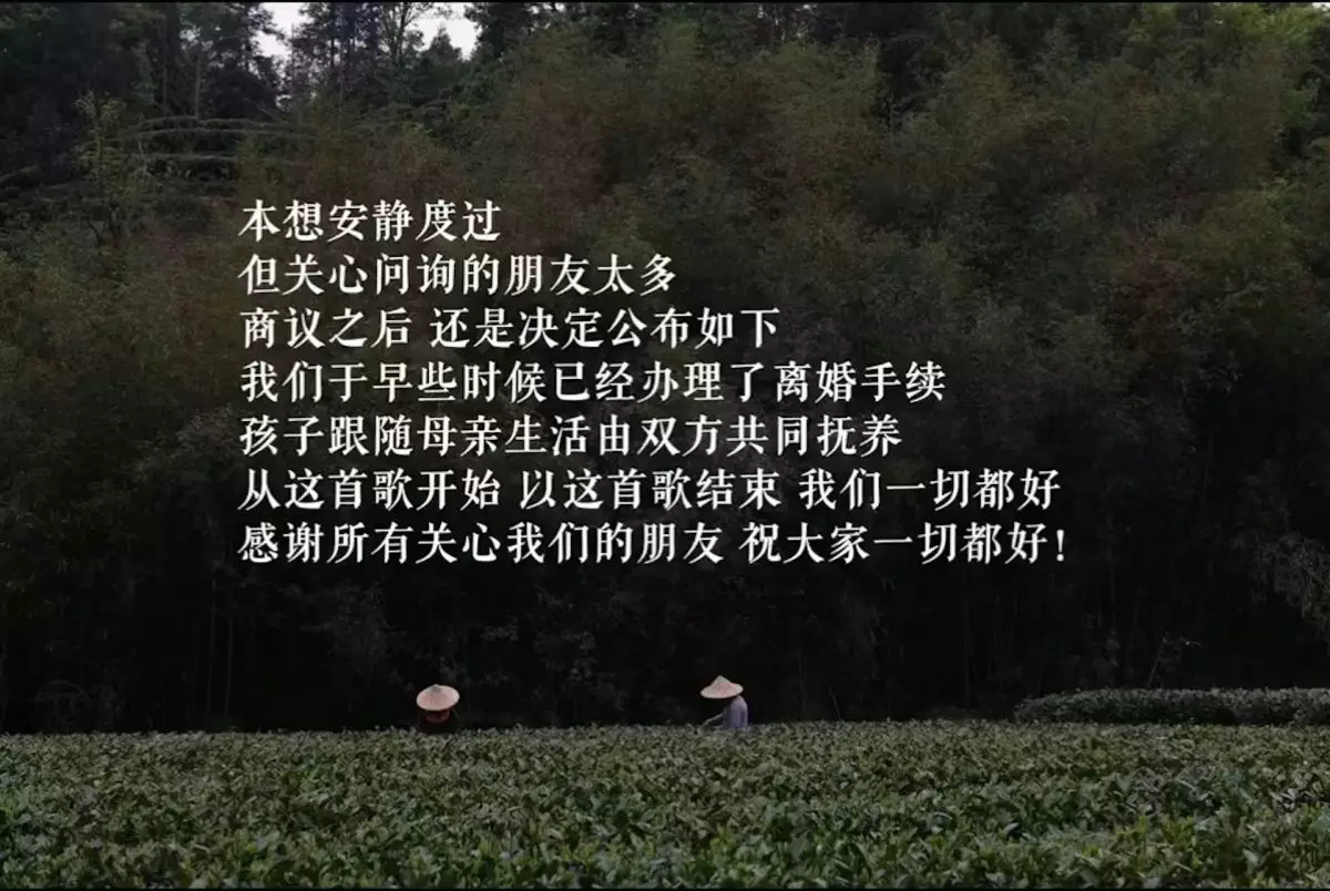 李亞鵬在聲明中表示:「本想安靜度過,但關心問詢的朋友太多,商討之後,還是決定公布如下,我們於早些時候已經辦理了離婚手續,孩子跟隨母親生活,由雙方共同撫養。從這首歌開始,從這首歌結束,我們一切都好,感謝所有關心我們的朋友,祝大家一切都好!」而海哈金喜亦同步轉發聲明。