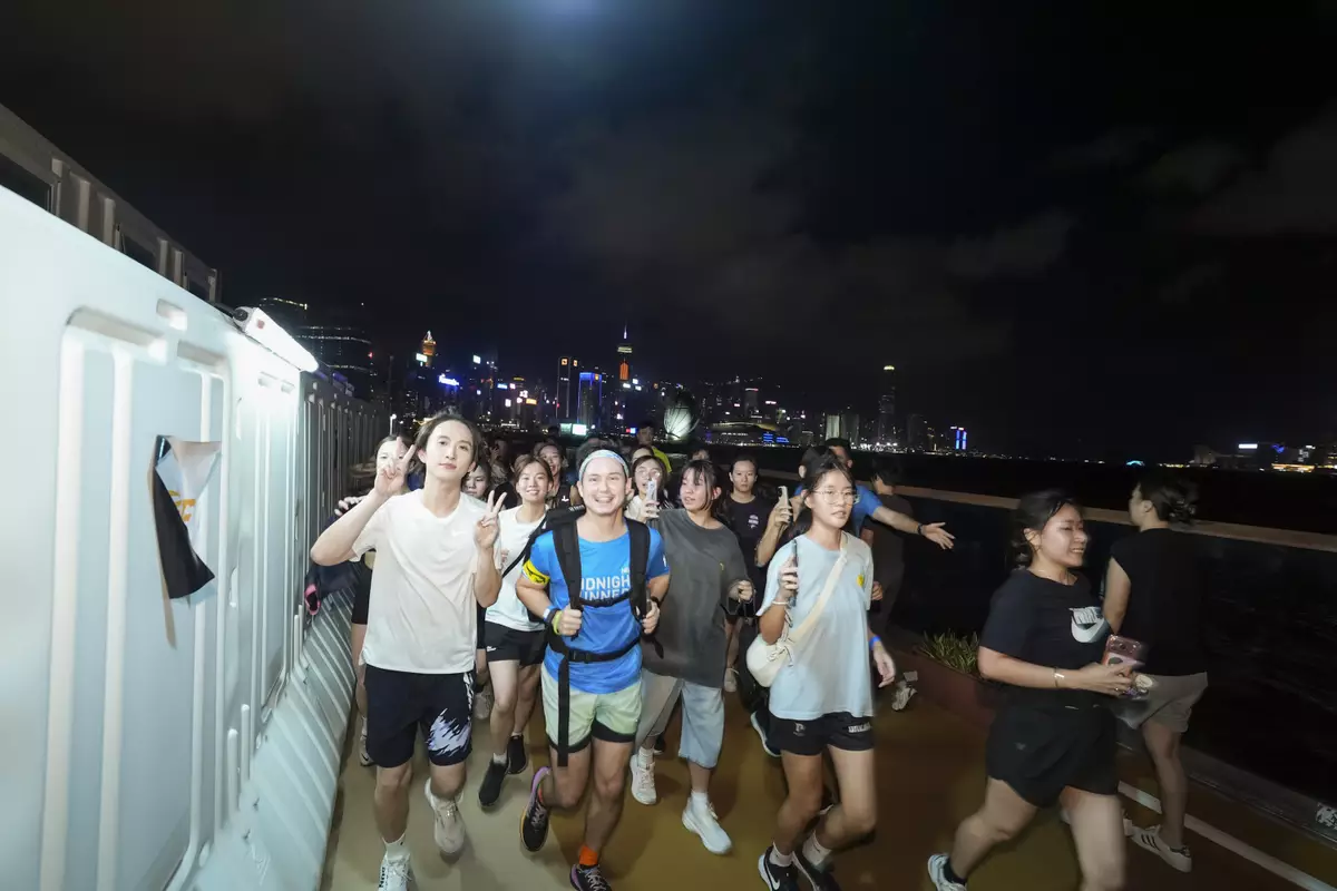與百名跑友維港夜跑開汗水派對。
