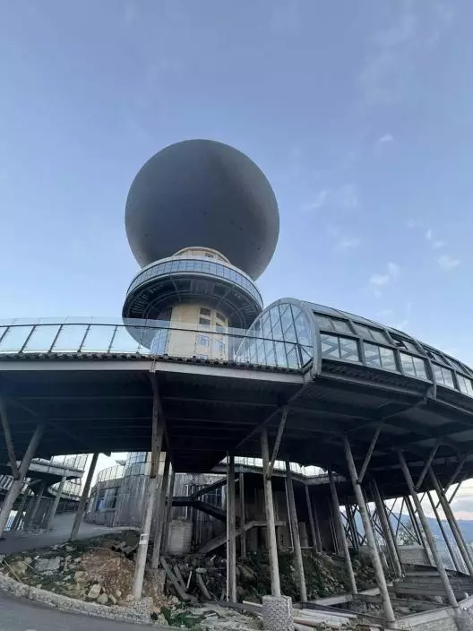貴州六盤水市盤州市中央森林公園內的月亮山山頂,矗立著一座高約100米、球體直徑達40米的「人造月亮」。這個曾被譽為「全球最大的人造月亮」的建築,啟用未滿百日便停運至今。