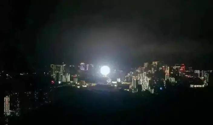 當時「月亮」亮起時,整座山腳像白天一樣明亮。微博圖