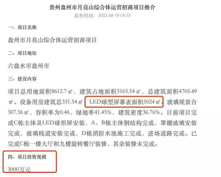 根據最新公示,該項目設計方案已進行五項重大變更,包括:用地紅線調整、建築面積重新計算、道路與觀景台設計優化等,項目名稱也從「盤州市中央森林公園月亮山綜合體建設項目」更名為「盤縣中央森林公園月亮山綜合體建設項目」。