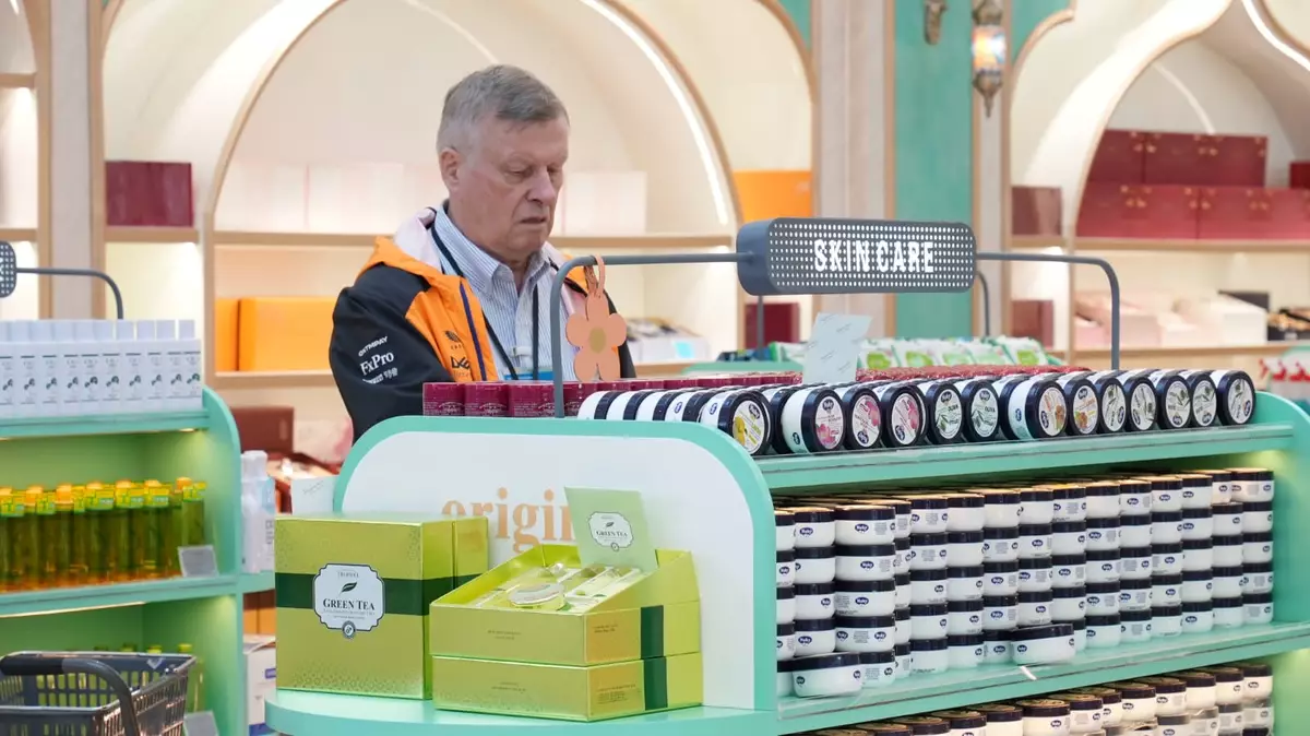 免稅店負責人介紹,目前店內陳列有一千種以上的商品,庫存則達三千種,涵蓋來自歐美、日韓、哈薩克斯坦等世界各地的進口產品。高端系列主要聚焦歐美日韓品牌,而特色商品則針對中亞市場,品類豐富,包括美妝、日化洗護、食品及保健品等,滿足多元消費需求。