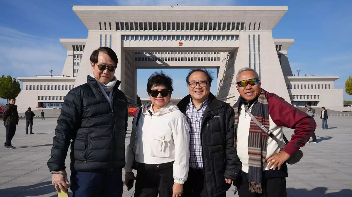 崔建春與參訪團成員在第六代國門留影。巴士的報記者攝