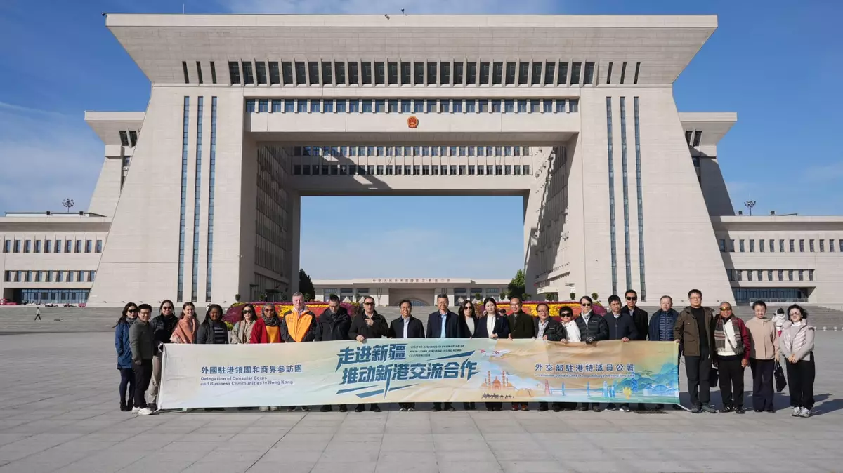 外交部駐港公署率領的外國駐港領團和商界新疆參訪團於13日晚抵達伊寧,14日早開啟伊寧之旅,首站抵達中哈邊境的霍爾果斯口岸,深入感受新疆作為「一帶一路」樞紐的開放活力。