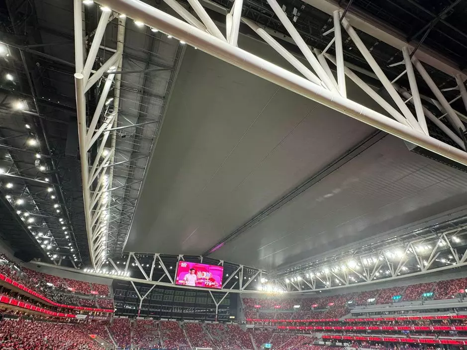 賽事吸引大批球迷入場,大部分穿上紅色港隊球衣,現場一片「紅海」。讀者提供