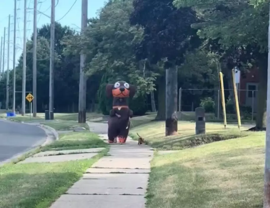 日前,國外一名飼主「@undercoverdachshund」於TikTok上分享自己的「創意遛狗」畫面,笑翻眾多網民。他表示,每次帶自家臘腸犬外出散步時,自己都會穿上一套特製的「臘腸犬充氣服」,遠遠望去就像一隻巨型臘腸犬在牽著一隻迷你版臘腸犬散步,畫面極具反差萌,吸引眾多市民駐足圍觀。