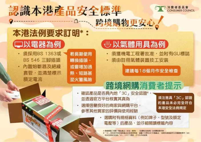 港人從內地平台網購以及北上購物已成日常,就連內地電器等產品也會購入回港使用。不過,消委會指出,即使產品附有內地的「3C」安全認證,亦不代表完全符合本港法例要求,特別是電器、氣體用具等高風險產品,若不當安裝或長期使用轉換插頭,隨時可能引發火警,後果嚴重。