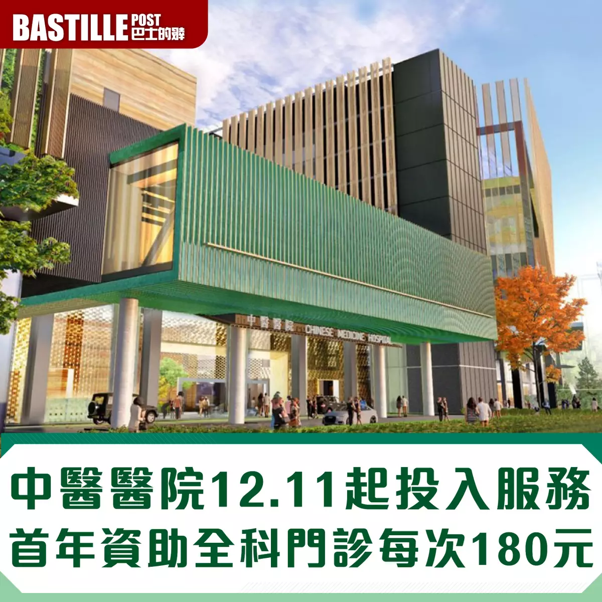 位於將軍澳百勝角路的香港中醫醫院將於12月11日起分階段投入服務,採用公私營模式營運,其中私營服務部分項目,首年提供體驗優惠,中醫診症每次收450元、高級或顧問中醫師收790元;中醫治療收450元、高級或顧問中醫師收630元;物理治療和職業治療等綜合專職醫療門診,每種治療收700元至1780元。