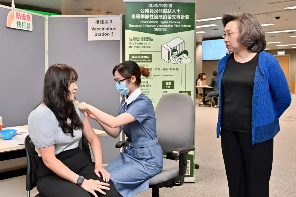 楊何蓓茵表示,公務員經常有機會接觸市民,接種疫苗可以更好保障他們和服務的市民的健康,減低流感在工作間以至在社區傳播的風險,更可以減低公務員患病對公共服務的影響。她鼓勵更多公務員及早接種疫苗,亦很高興不少同事今日積極響應,外展接種服務效率高且方便,讓同事只需短暫離開工作崗位便可完成接種。